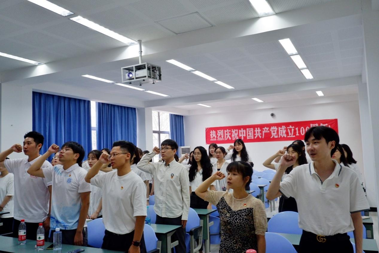 全院师生聚精会神聆听习近平总书记的重要讲话,在笔记本上认真记下习近平总书记重要讲话精神,不时为习近平总书记的精彩讲话而激动振奋,多次响起热烈的掌声。庆祝大会结束后,光华校区党员师生重温入党誓词,柳林校区教职工和学生代表开展心得交流座谈会。