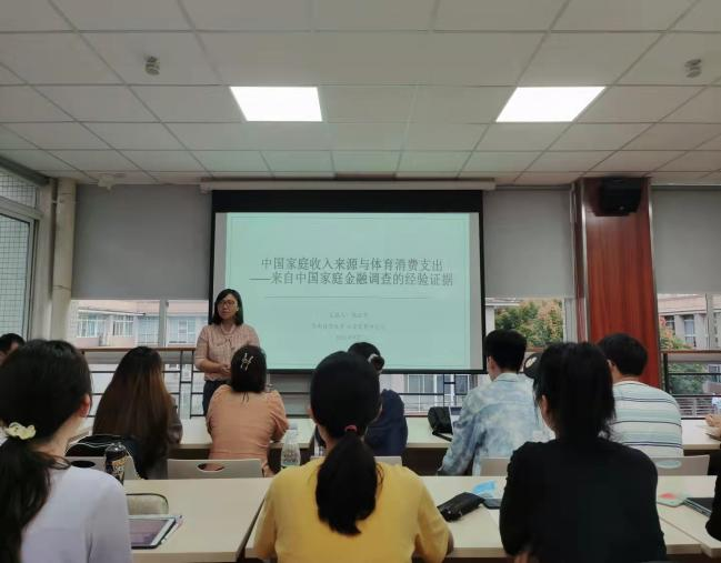 接下来,张云亮老师向大家分享了自己的论文《中国家庭收入来源与体育消费支出》,张老师结合“双减政策”与“体育进中考”等大背景对既有研究进行挖掘,将家庭收入来源作为自变量,家庭体育消费支出作为因变量,得出四点结论。第一家庭财产性收入和转移性收入增长对体育消费具有显著的积极影响;第二有机会获得财产性收入的个体和家庭,其劳动力市场的时间配置约束往往也相对宽松,因此财产性收入增长促进体育消费的作用更加稳健;第三金融类财产性收入的增加和非金融类财产性收入的增长均能够显著促进体育消费;第四家庭转移性收入增长对体育消费的正向影响存在城乡户籍的异质性:对非农户籍家庭体育消费的促进作用要明显甚于农业户籍家庭。