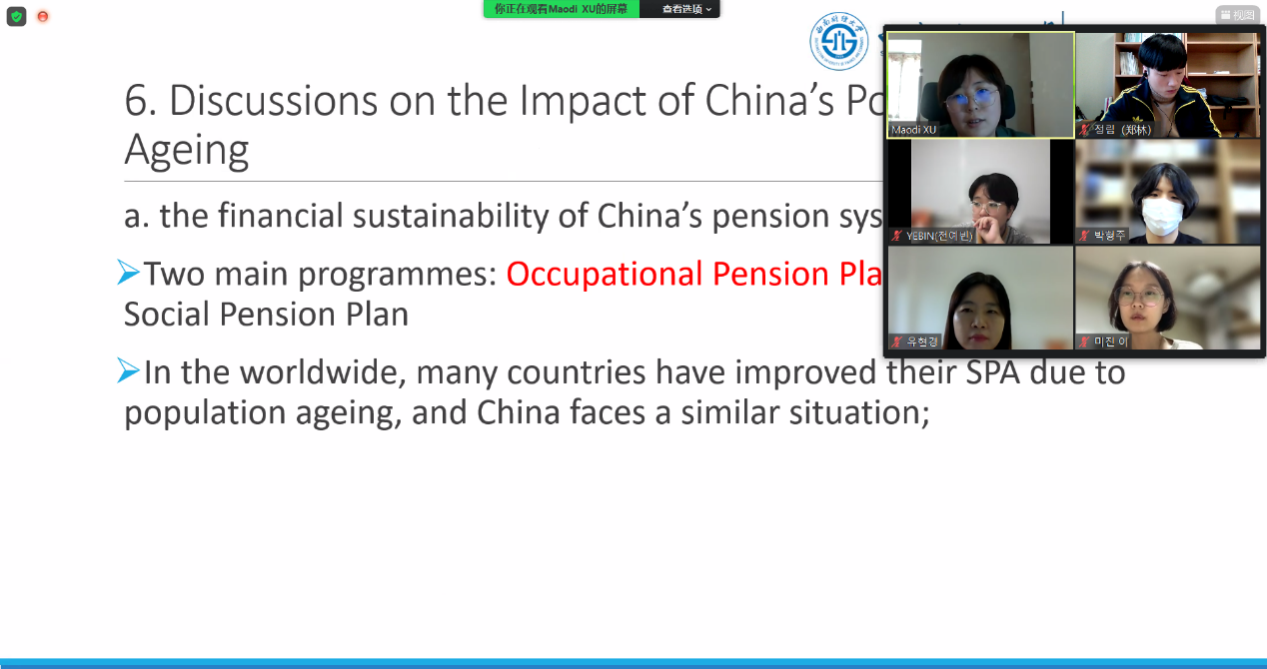 由于农村地区低出生率和人口流失现象,中韩两国的农村地区在面对人口老龄化问题上面临共同的挑战。10月29日,国产无码 副教授徐茅娣老师受邀参加韩国全北大学主办的“中韩农村老龄化地区创新研讨会(线上)”,为韩国全北大学师生开展了关于“中国人口老龄化现象的地域差异及应对措施”的学术讲座。在时长1小时的全英文讲座基础上,双方就中韩两国农村存在的老龄化问题和面对的挑战展开了充分的讨论,对农村老年人福利促进、对生育政策效果及未来生育率展望、少数民族地区人口老龄化趋势等现象的中韩异同有了更为深入的认识。