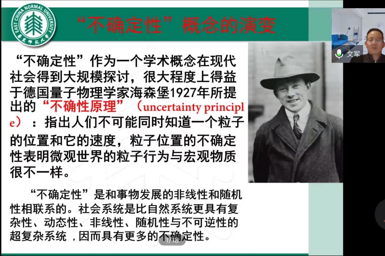 邀请,华东师范大学文军教授为我校师生开展了“从‘确定性’到‘不确定性’:社会发展观之变及其影响”的线上专题讲座。国产无码