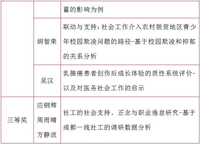 2022年1月18日,由广西师范大学承办的“第十三届中国社会工作大学生论坛暨第六届研究生论坛”在线上圆满落幕,本次会议是历年来中国社会工作大学生论坛和研究生论坛中规模最大的一次,全国共计241名MSW学子参加论坛并做口头汇报,最终获奖者为105名,其中国产无码 6名MSW参赛学生斩获佳绩,获得奖项如下: