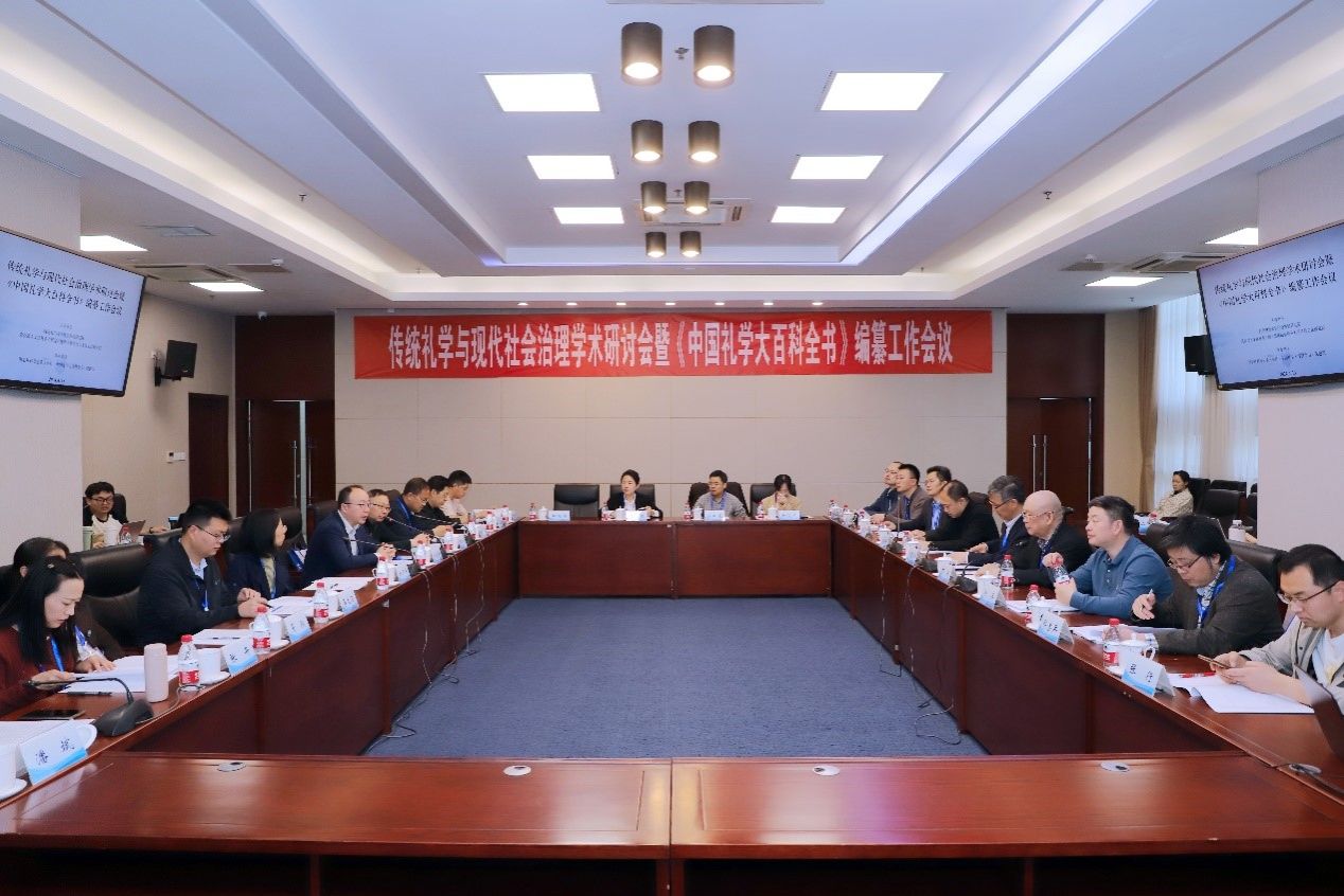 与教育部人文社科重点研究基地山东师范大学齐鲁文化研究院共同主办,国家社科基金重大项目《中国礼学大百科全书》课题组协办。来自山东师范大学、河南大学、厦门大学、曲阜师范大学、四川省社科院、新星出版社等院校及出版机构的二十余位专家出席会议,共同探讨传统礼学对今天社会治理的意义和价值,并对《中国礼学大百科全书》的编纂体例、工作计划及条目设置情况等进行讨论。