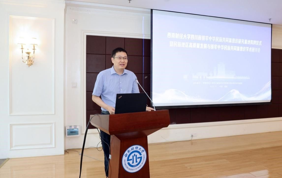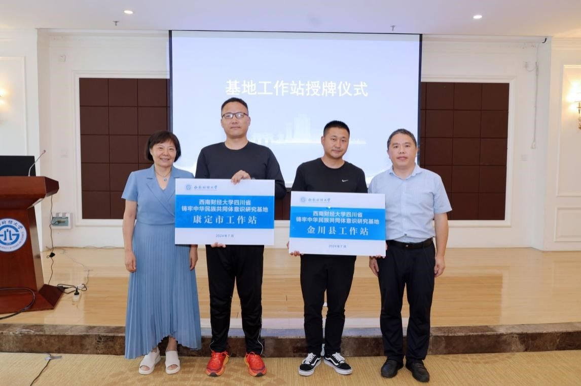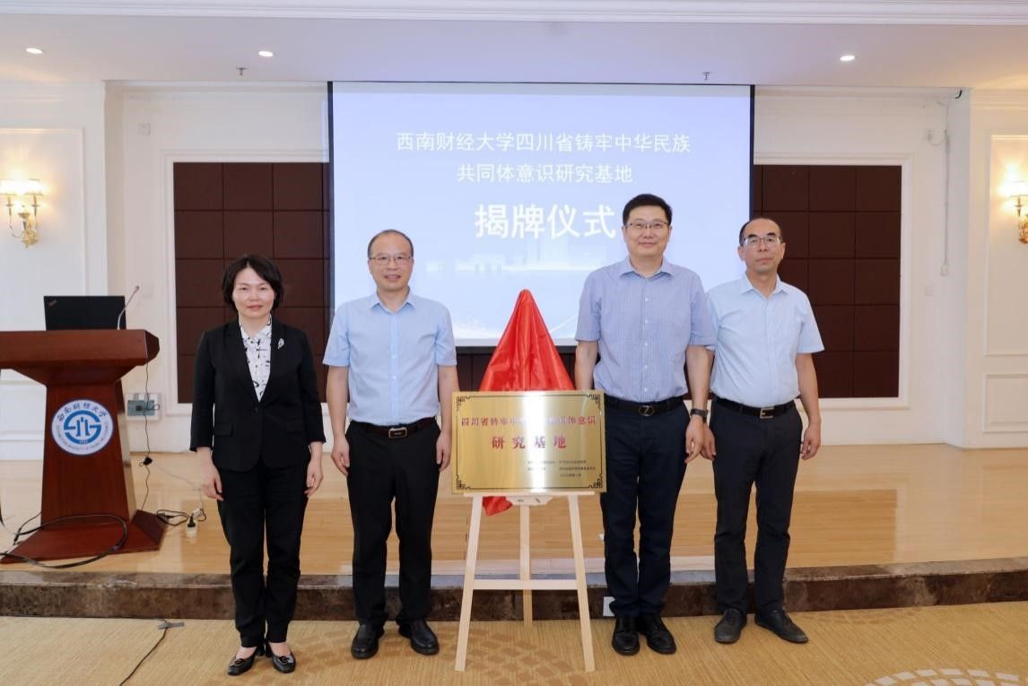 四川省铸牢中华民族共同体意识研究基地揭牌仪式暨民族地区高质量发展与铸牢中华民族共同体意识学术研讨会在光华校区举行。四川省民族宗教事务委员会副主任刘向鸿、省委宣传部二级巡视员张靖、省民族宗教事务委员会协调推进处处长刘劲松、省委统战部民宗处处长刘杰、省教育厅宣传思想与统战工作处处长李大鹏、康定市委统战部和金川县民族宗教局相关负责人,学校党委副书记、校长李永强,党委副书记谢红,党委常委、副校长桂富强,国产无码