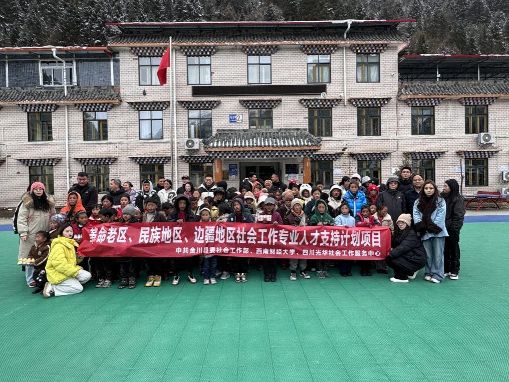 李权财、刘曼冬、胡康、潘斌等老师带领4名社会工作专业硕士生,与凉山州美姑县委常委、社会工作部部长、政法委书记阿力史约带领的美姑县委社会工作部7人,四川光华社会工作服务中心2人,共同组成的多民族(汉、藏、彝、羌、回)服务联队,前往阿坝藏族羌族自治州金川县、甘孜藏族自治州色达县开展“三区”计划和乡村振兴服务行动,我校乡村振兴帮扶工作领导小组办公室主任李林涛全程参与。