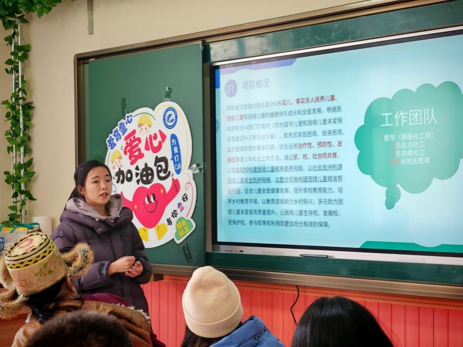 四位老师前往金川县沙耳乡中心校开展了《我们的求学之路》的主题分享。四位老师结合各自的求学经历,鼓励中心校的各位同学要勇于克服困难、积极向上、不断追求更美好的未来,受到学校师生的热烈欢迎。3月18日,马晶等四位社会工作专业研究生继续面向沙耳乡中心校学生开展以《认识更好的自己》为主题的学校社会工作服务行动。