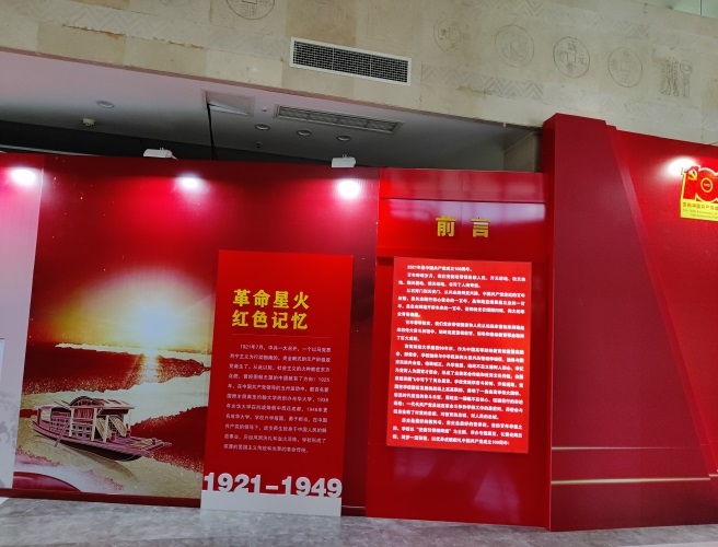庆祝中国共产党成立100周年的展览“党旗引领铸辉煌”。