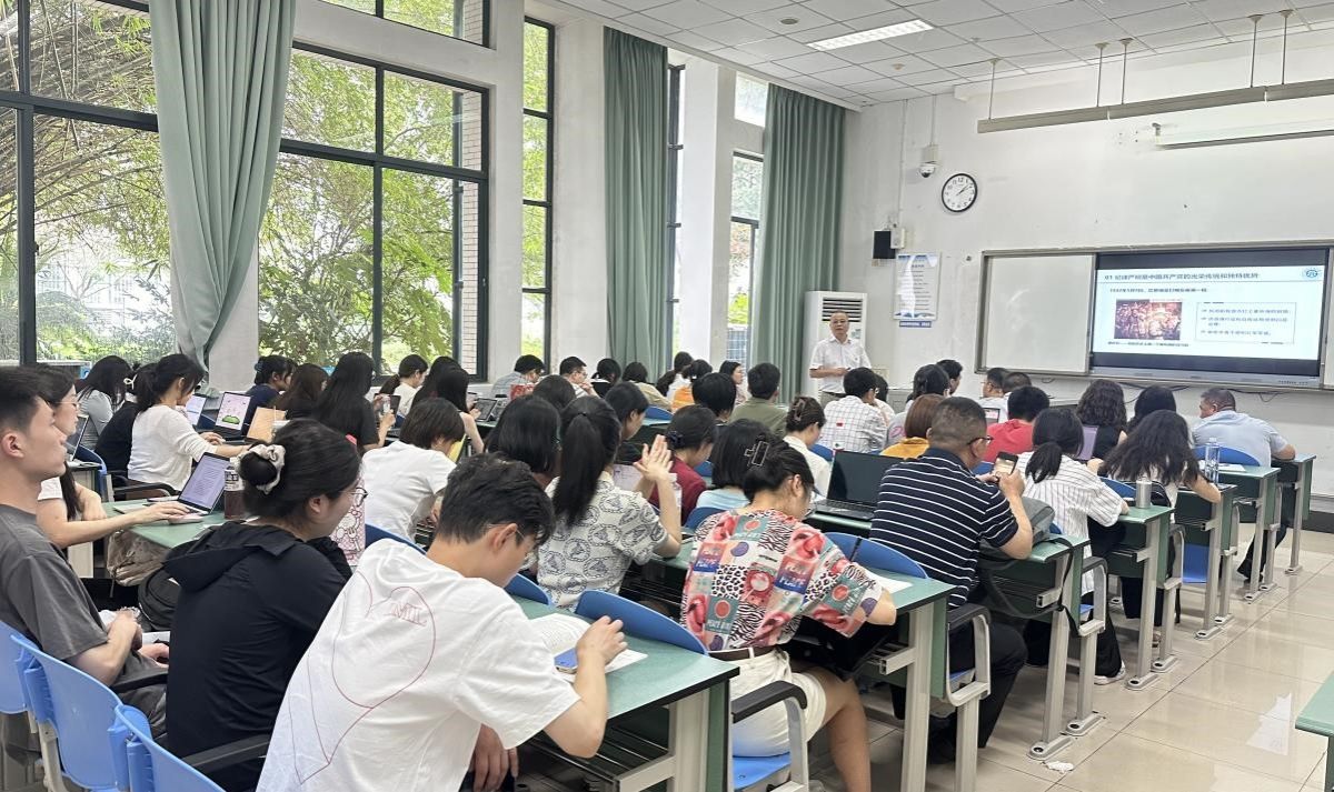 党委书记岳敏于经世楼C104讲授“党的纪律建设永远在路上——学习新修订《中国共产党纪律处分条例》”专题党课,学校特聘组织员郑斌同志列席,研究院全体党员师生参加学习。